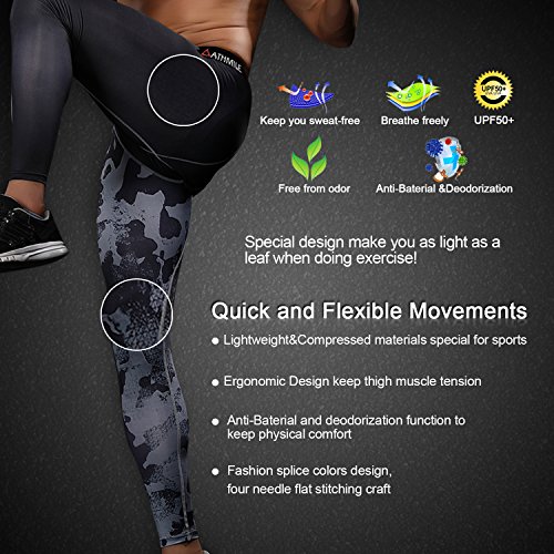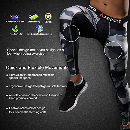 Athmile Men's Sports Compression Cool Dry Pants Workout Tights Running Base layer Leggings for Hiking,Marathon,Basketball,Exercise and Fitness