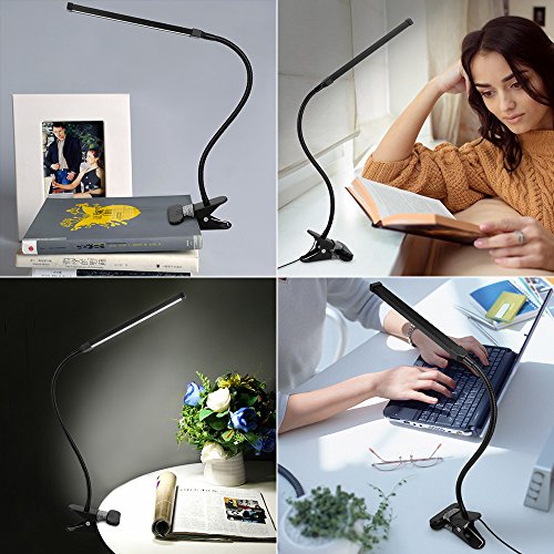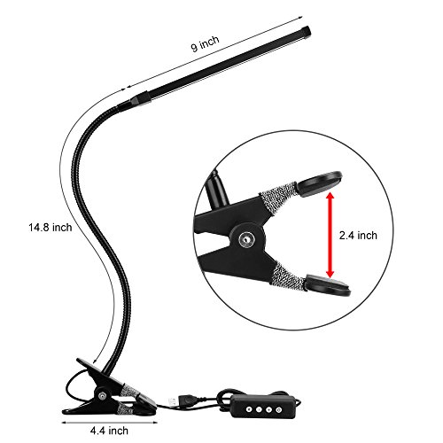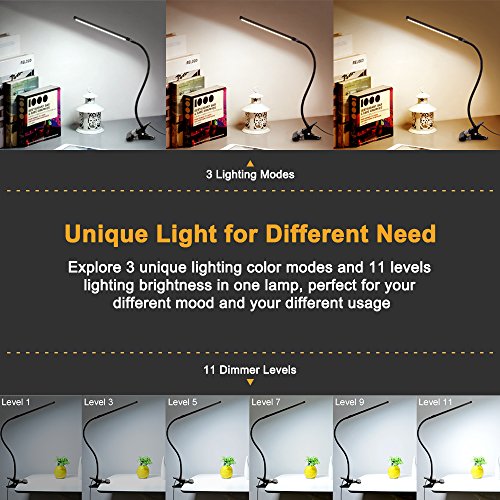 KEDSUM Dimmable Eye Care LED Clamp Lamp, Flexible Gooseneck,3 Lighting Modes 11 Dimmer Levels, USB Rechargeable Desk Lamp for Bedside, Bedroom, Office, Black. Description: Feature: