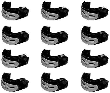 (Brain Pad)/Football/Protective Gear/DIRECT FROM USA/Brain-Pad Pro Plus Double Laminated Mouthguard, Strap/Strapless Combo-Pack of 12 (Black/Gray, Youth)