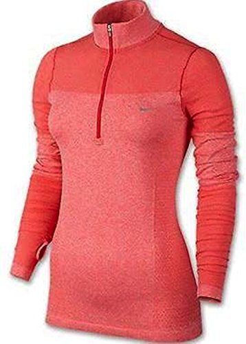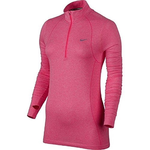 Mile after mile, the Nike® Women's Dri-FIT Knit® Long Sleeve Running Shirt keeps up with your powerful gait. Dri-FIT® fabric pulls sweat away from your skin for dry performance. A mock neck zips up to the chin for protection against the elements without the bulk, while flat seams and mesh panels reduce irritation and promote air flow for soothing, breathable wear. Face the long road ahead with confidence in this Nike® half zip.Feature