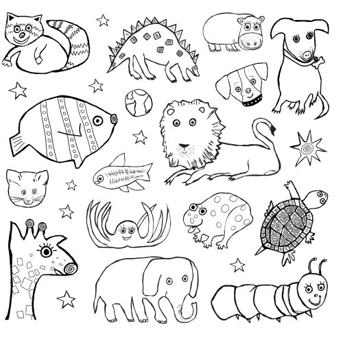 - Feature : Discover, explore, and create with stickers designed by Emily Green / Includes 3 sheets for a total of 350 adhesive stickers / One page of stickers is ready for children to color and make uniquely their own / World of Animals stickers feature a wide variety of animals, from dogs to warthogs / Emily Green is an artist and mom who designs interactive products that inspire kids to be imaginative and creative