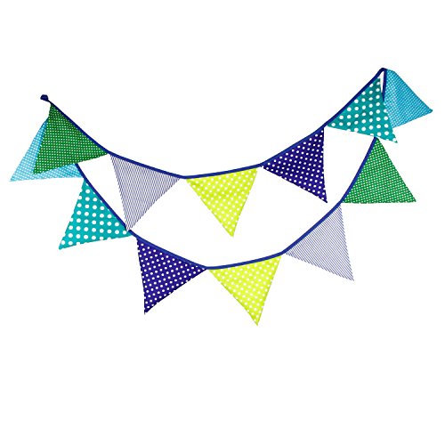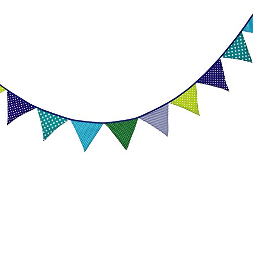 GREEN & BLUE VINTAGE FABRIC FLAG BUNTINGS GARLANDS WEDDING BIRTHDAY PARTY DECORATION