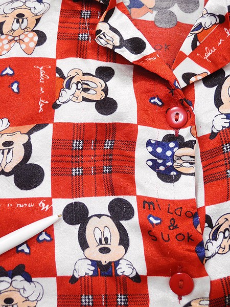 赤白の千鳥格子に可愛いミッキー達。