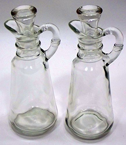 -. Brand : Unknown -. Color : clear -. Feature : Great For Table Top Use / Great Set For Oil And Vinegar -. Label : Unknown (No Mfg. Marks) -. Manufacturer : Unknown (No Mfg. Marks) -. ProductGroup : Single Detail Page Misc -. ProductTypeName : MISC_OTHER -. Publisher : Unknown (No Mfg. Marks) -. Studio : Unknown (No Mfg. Marks) -. Title : 2 Vintage Glass Cruets