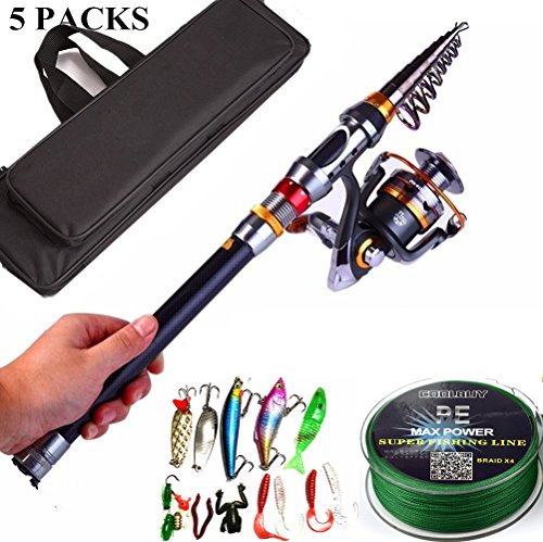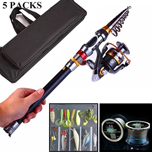 Studio : BNTTEAM Publisher : BNTTEAM Binding : Misc. Product Description The Rod: Fishing Rod: Telescopic Fishing Rod Size:2.1m/2.4m/3.0m Close length: Approx. 39cm/42cm/43cm/ Material: 99% Carbon Fiber Alloy 1.More short body with large spool and large line capacity 2.Deep aluminium spool with double color and one line holes 3.Instant anti-reverse 4.Power drive gear equipped for high strength 5.Coiled bail spring 6.S-curve oscillation system for very good line winding 7.Right/left inter-changeable handle 8.Computer balanced rotor 9.High tensile strength plastic body 10.Telescopic finshing rod pole is sensitive graphite blank construction; 11. aluminum oxide guide inserts fishing pole; 12. Stainless Steel Hooded Reel Seats make the fishing rods always brightness cause anti-seawater corrosion; EVA Fore Grip for comfort; 13. Multiple lengths and actions; Made from Carbon Fiber mixed with Fiberglass ,strong and durable; 14. Collapses for easy storage and travel; 15. Suit for: Sea fishing, boat fishing; 16. Several length for you to choose from. The Reel: It is fortified with metal main shaft and components and equipped with 11 ball bearings supporting the main shaft that stabilize the main shaft for precise rotation and give added endurance. Perfect Christmas Gift For our Fisherman Spinning Fishing Reel Series: DK3000 Series Material: Full MetalP66 Body Ball Bearing: 11BB Gear Ratio: 5.2:1 Weight:396g Fishing Bag: Material: 420D oxford fabric camouflage(optional) Length: 20inch (optional) Package Includes: Fishing Rod x1 Fishing Reel x1 Fishing Bag x1 Fishing lures x16 Fishing Line(50m)x1