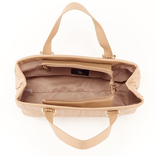 US Polo ASSN Women's Heather Embossed Carryall Bag is uniquely designed bag, perfect for going out either for a Day for shopping or a night out on the town. This satchel / detachable crossbody Bag provides you with two ways of carrying your bag comfortably. The interior of the bag features one zipper and one slip pocket, where you can securely store your personal items. Zipper and magnetic snap closure gives you a double protection of your bag.Feature