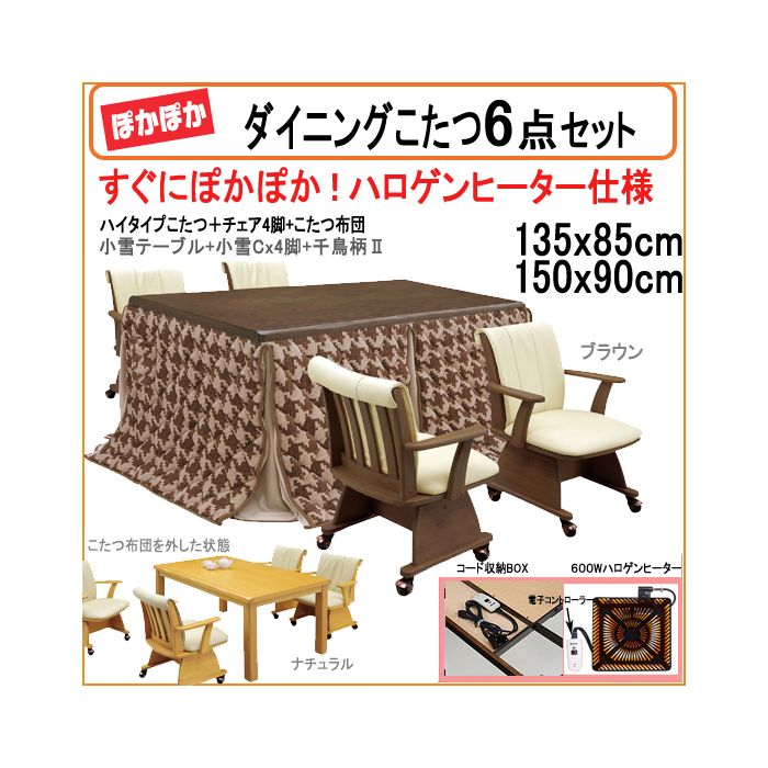 원본상품명:速暖性 余裕のダイニングこたつセット6点 こたつ布?付き 幅135cm(小雪 千鳥柄)sw212-2fset-a[送料無料][fv]