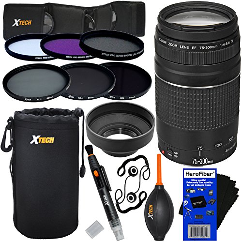 Canon EF 75-300mm f/4-5.6 III Telephoto Zoom Lens for Canon EOS 7D, 7D Mark II, 40D, 60D, 70D, 80D, Rebel SL1, T1i, T2i, T3, T3i, T4i, T5, T5i, T6, T6i, T6s, XS, XSi, XT & XTi Digital SLR Cameras (international version, backed by Hot Deals Electronics 1 year guarantee)