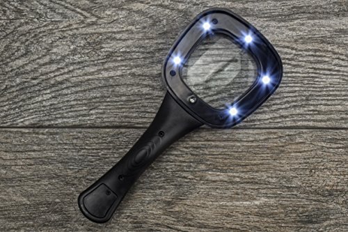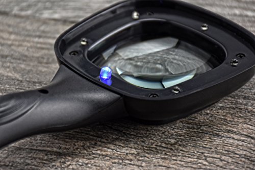 SE is proud to present our 4X UV/LED Illuminated Handheld Magnifier. Our contemporary square design stands out when compared to the traditional round. The optional UV bulb is a great addition with numerous uses such as checking identification, money, documents, gems, stones, minerals, scorpions, pet urine trails, and much more. Features of our 4X UV/LED Illuminated Handheld Magnifier include: (1) Magnification: 4x (2) Lens size: 2" x 2" (3) Glass lens (4) Square contemporary design (5) UV bulb (6) UV wavelength: 396-400nm (7) 5 super bright white LEDS (8) Color: black (9) Comes with 4AG10 batteries How our 3 way switch works: (1) Slide down for the UV bulb (2) Slide up for the 5 bright white LEDs (3) Slide to the middle to turn off SE is committed to providing the customer with the best source for value possible on the market. You will enjoy the quality, function and usefulness this 4X UV/LED Illuminated Handheld Magnifier has to offer. 0 |