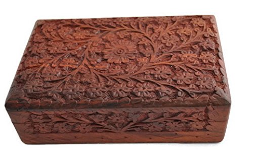 [Product Information]- Elegantly hand carved wooden jewelery box makes a perfect gift for Girls, Teens and Women of all ages. Pamper your loved ones with this big size box. Richly decorated with floral carving by traditional artisans from India.