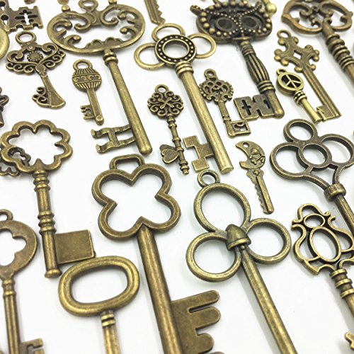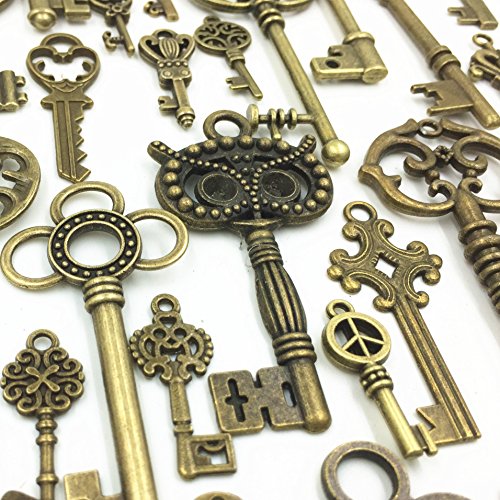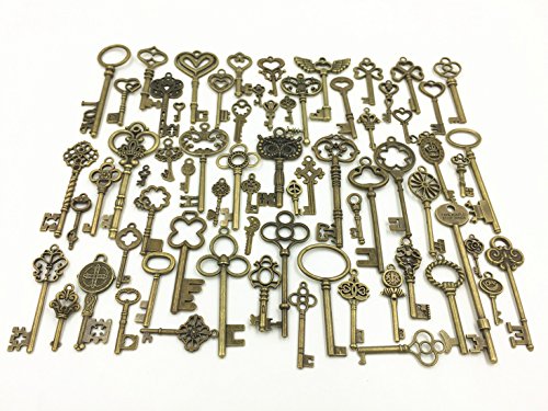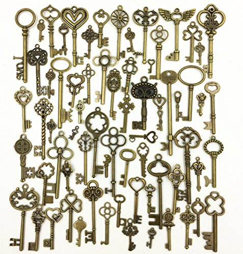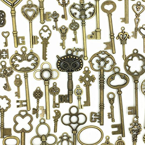 Yahead 69pcs Antique Bronze Vintage Skeleton Keys Charm Set DIY Handmade Accessories Necklace Jewelry Making Pendants