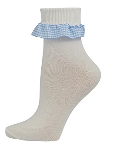 -. Title : Soxsmith 6 Pairs Big Girls' Gingham Frill White Cotton Ankle Socks - UK Made