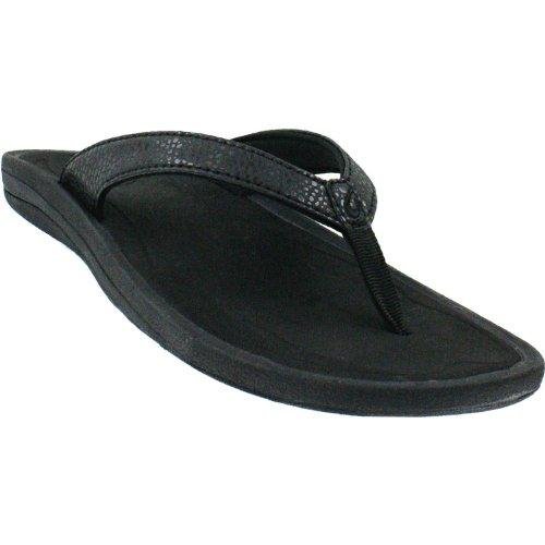FEATURES of the OluKai Women's Kulapa Kai Sandal Non-marking rubber or gum rubber outsole designed with our ocean currents in mind and molded siping for traction Anatomical compression molded EVA midsole with a soft ICEVA drop-in footbed for both comfort and support Vegan friendly footwear Water-resistant man-made materialFeature