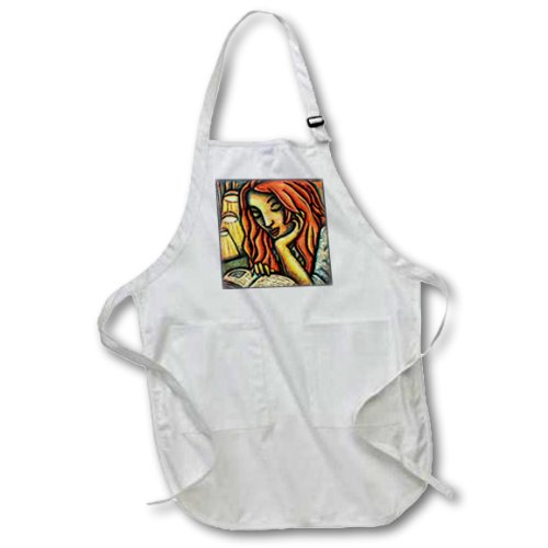 3dRose apr_21207_2 Reader Women Red Hair Medium Length Apron with Pouch Pockets, 22 by 24-Inch