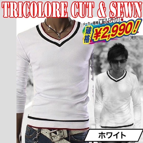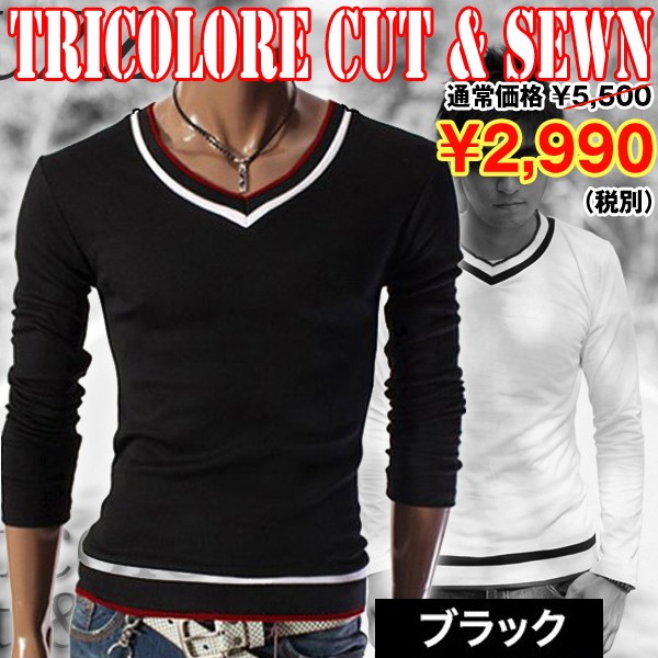 ファッション誌No.1に輝いた超モテ・インナー!伸縮フィット素材カットソー!通常5940円(税込)の処、46%OFF!特別価格3229円(税込)にて限定販売!3COLOR Tricolore Cut & Sewn オトコ艶ラインに仕上がる《伸縮性》フィット素材! アウターを脱げば、抱かせるMEN’sオーラ・カットソー! 肌触りもサラサラ感触で気心地Good!!