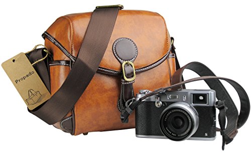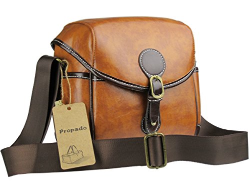 Waterproof PU Leather Camera Bag with top flap and over one shoulder or cross-body strap for comfort on the go.