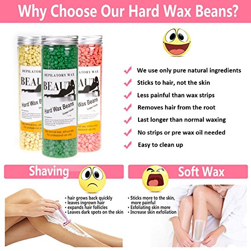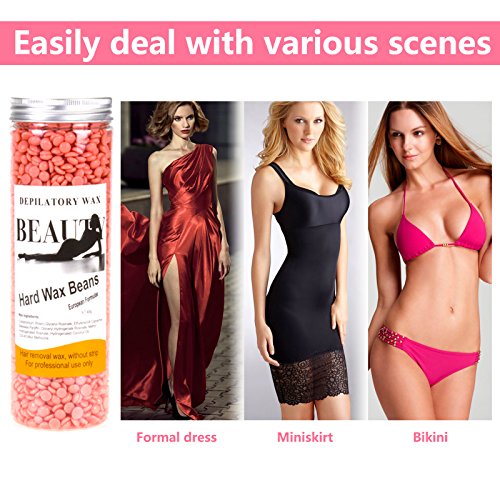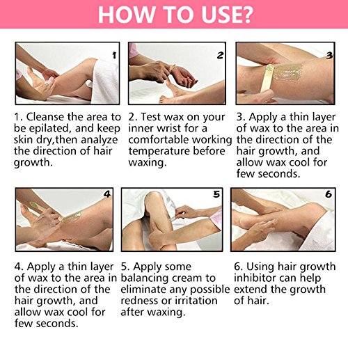- ✿ Easy to Apply - Heat the hard wax beans to a working temperature by wax heater. Then using a spatula to stir the wax. Wait for 5 minutes to cool the wax beads and then spread a layer of film wax onto the area to be treated in the direction of the hair growth