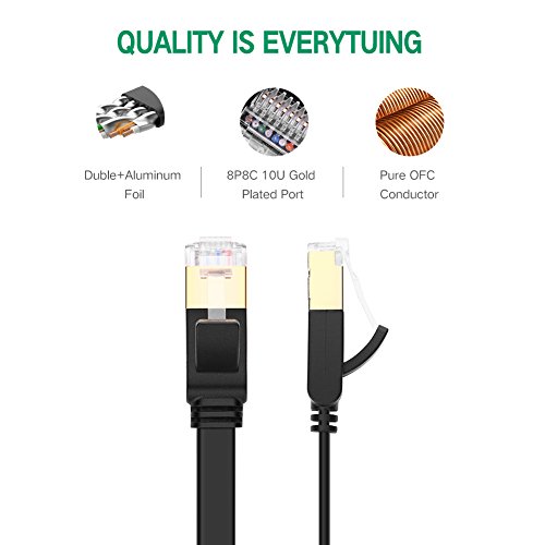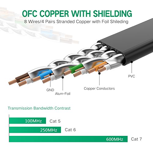 SHIELDED FROM INTERFERENCE: Made of 4 shielded twisted pair (STP) of copper wires with two RJ45 connectors on each end. Compared to the Cat 6 network Ethernet cable, the additional shielding and improved quality in twisting of the wires provides better protection from crosstalk, noise, and interference that can degrade the signal quality