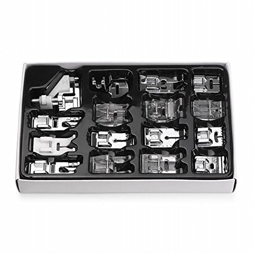 -. Feature : 16 pieces sewing machine presser feet set, multifunctional kit;Material: Zinc alloy, PVC. / Compact Kit, brand new and high quality, very functional for all your sewing needs. / Very popular and different presser feet for most of household multi-functional sewing machines. / Use them as a fashion accent on blouses and dresses, as border for sheer curtains, or as a flounce for bedspreads, skirts, etc. / Suit for: Multifunctional electric sewing machine, such as Brother, Butterfly, Singer, Janome, Baby Lock and so on.