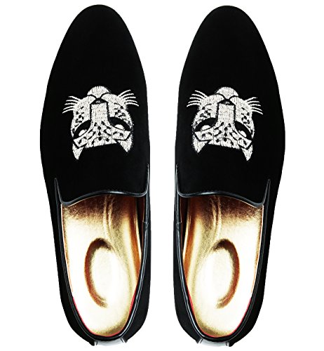 -. Title : Santimon Mens loafers and slip on Smoking Slipper Moccasins Embroidery Suede Casual Dress Shoes Black