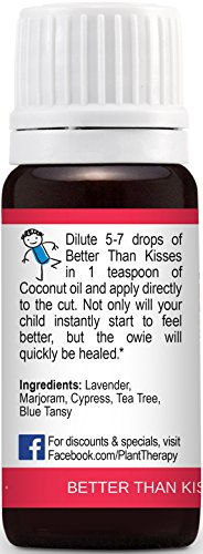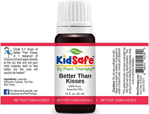 There aren�t very many things that truly make an owie feel better. Whether your child has gotten a bee sting, scraped their knee, cut their finger or anything else that children do, KidSafe Better Than Kisses can help. Dilute to 4-5% in Coconut oil and apply directly to the cut or scrape. Not only will your child instantly start to feel better, but the owie will quickly be healed. Plus, Better Than Kisses will be killing any possible bacteria so the owie won�t get an infection. It can also be applied directly to the stung area of a bee sting at full strength for instant relief. Specifically formulated for children ages 2-10. This synergy contains the 100% pure, undiluted essential oils of: Lavender, Marjoram, Cypress, Tea Tree and Tansy (Blue).