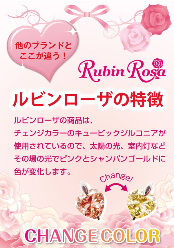 のルビンローザ☆チェンジカラーキュービックジルコニアを使用しているので、シーンごとに