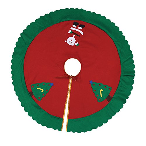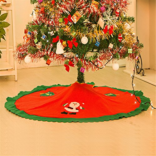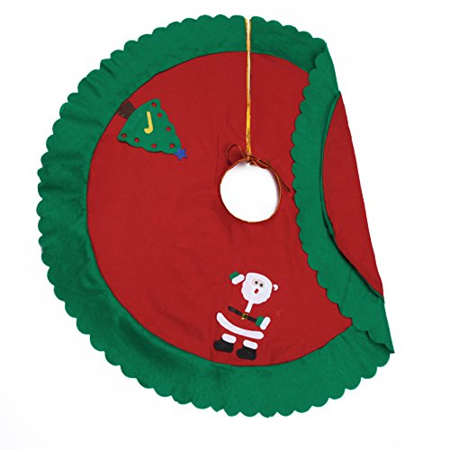 FindNew 35"Christmas Tree Skirt - Nonwoven cloth Xmas Santa Tree Skirt Holiday DIY Decoration - Red with Green Rim