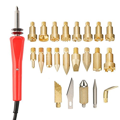 COCODE Wood Burning Pen Kit, 23pcs 30-Watt Electric Wood Burning Pyrography Tools Wood/Leather/Cardboard/Paper Soldering Chiseled Tips Hot Blade Tweezer With Chuck