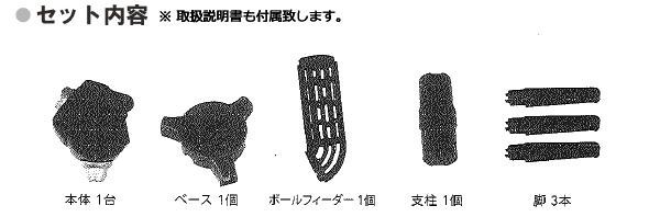 | 素材・材質 | 本体:ABS 支柱:ポリエチレン ベース・ボールフィーダー:ポリプロピレン |
