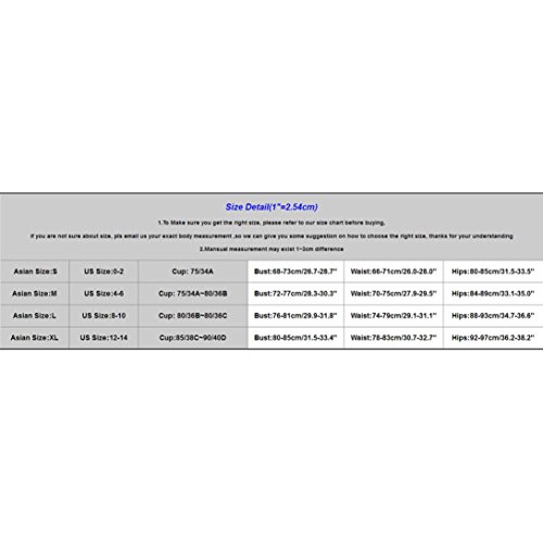 Asian Size:XL---US Size:12-14--Cup:85/38C~90/40D--Bust:80-85cm/31.5-33.4" --Waist:78-83cm/30.7-32.7" --Hips:92-97cm/36.2-38.2"