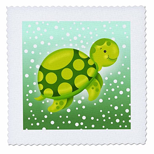 3dRose Cute Green Baby Turtle Swimming In A Cloud of Bubbles - Quilt Square, 8 by 8-Inch (qs_219164_3)