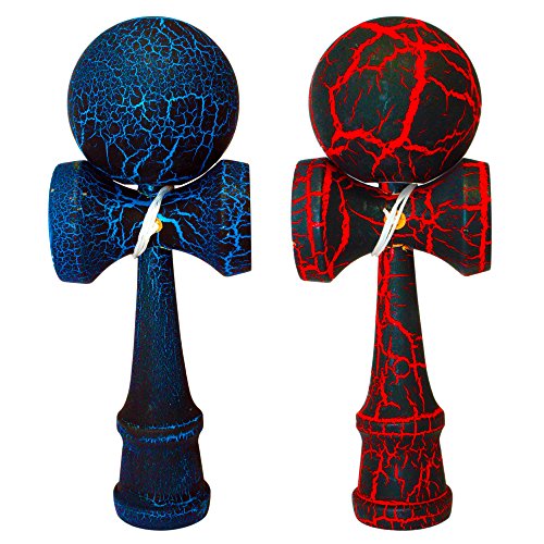 2 PACK - The Best Kendama For All Kinds Of Fun (full size) - 2-Pack - Awesome Colors: Red/Black Crackle and Blue/Black Crackle -Solid Wood - A Tool To Create Better Hand And Eye Coordination - KENDAMA TOY CO.