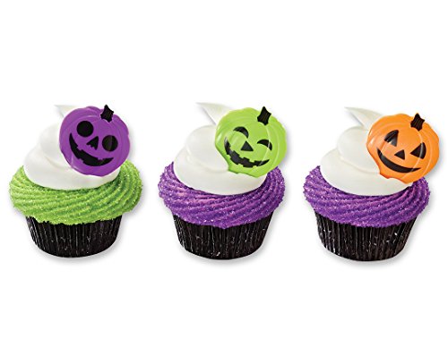 CakeDrake Colored Pumpkin Face Halloween Cupcake Picks (12 Pieces)