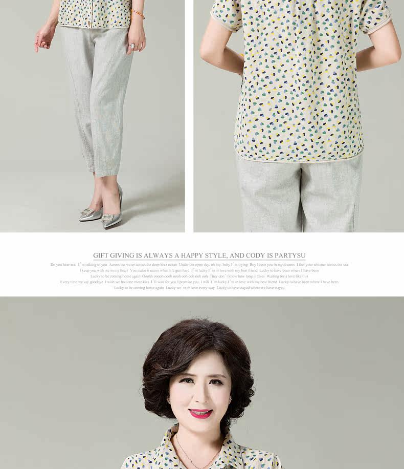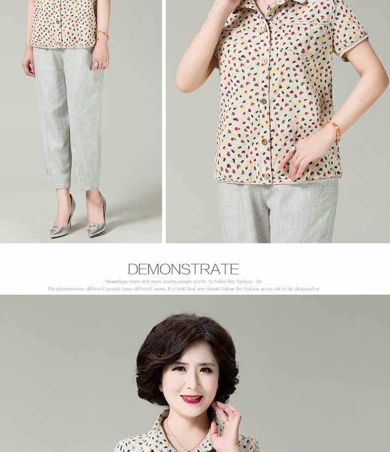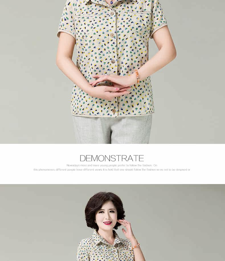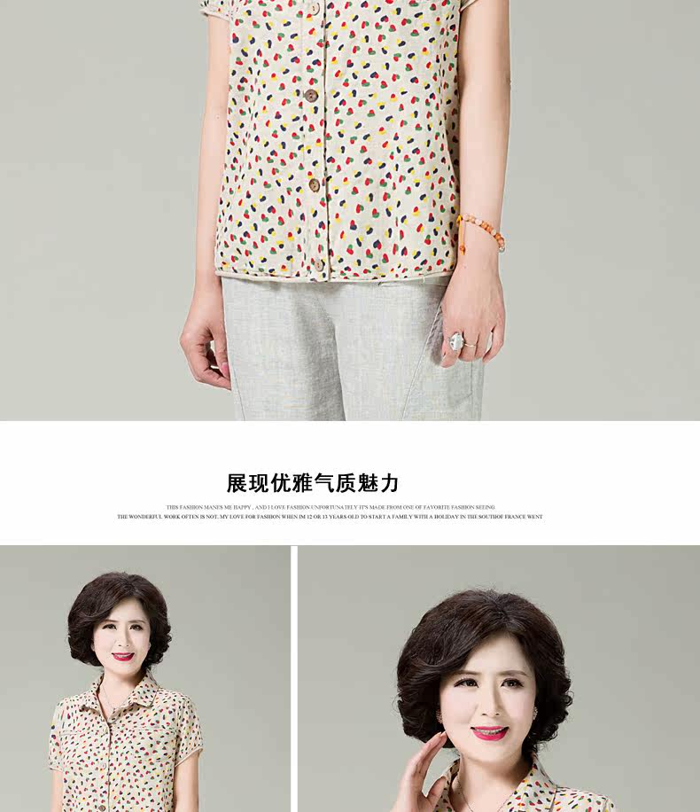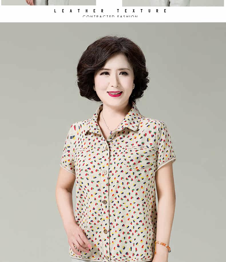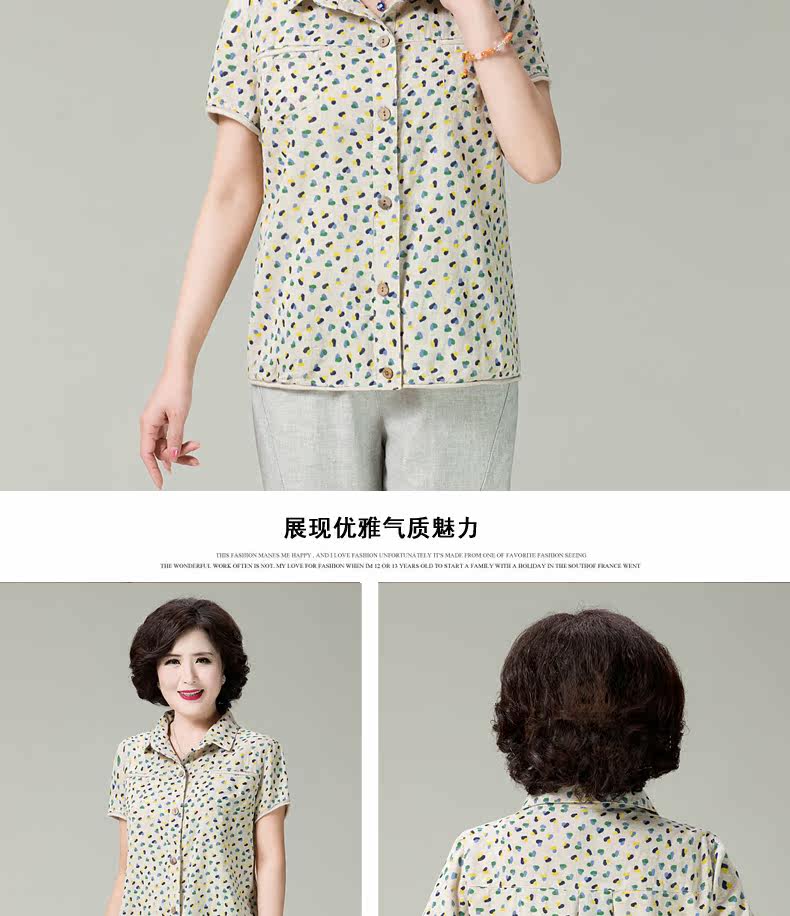 妈妈装夏装棉麻短袖衬衫女新款中老年宽松显瘦居家妈妈开衫女T恤