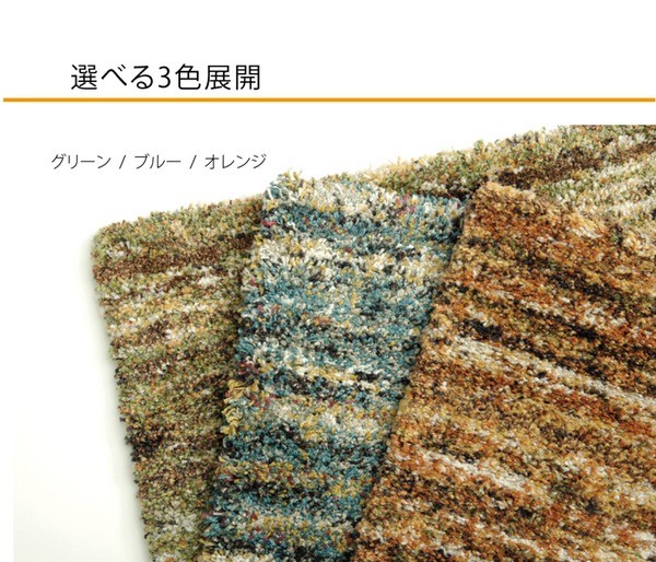 【素材】:ポリプロピレン100% 53,000ノット ※フリーゼセット糸使用 パイル長約25mm