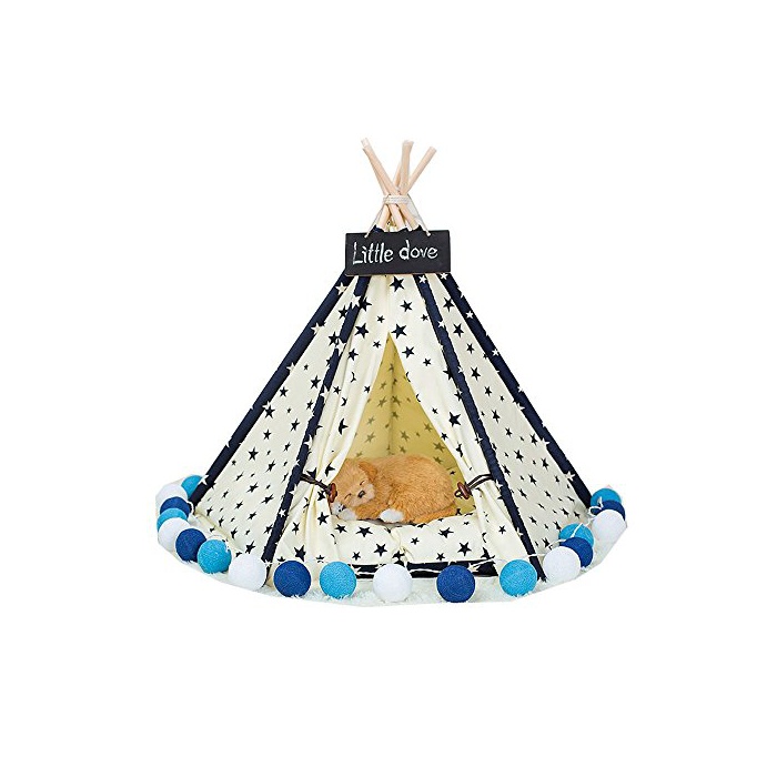 제품 사이즈:52*52*65cm 타입:텐트 재료:순면캔버스 코튼 캔버스 텐트5의 소나무의 나무의 봉1의 캔버스의 1 pc백의 assembly의 지시를 실행 조립하기 쉽 데굴데굴 작은 고양이를 위한 완전한 소형견,작은 애완동물 제품에는 쿠션과 부품이 포함되어 있지 않다