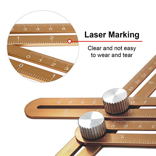 Amenitee Universal Angularizer Ruler - Full Metal Multi Angle Measuring Tool-Ultimate Angleizer Template Tool-Upgraded Aluminum Alloy Multi Functional Ruler(CHAMPAGNE GOLD)