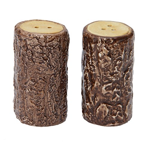 Creative Co-Op DA5221 Dolomite Tree Stump Shaped Salt & Pepper Shakers, Brown