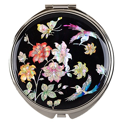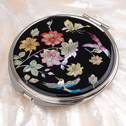 MOP Antique Cherry Blossom Pocket Mirror Magnifying Compact Size Travel Makeup Folding Cosmetic Hand Mirror Mother of pearl
