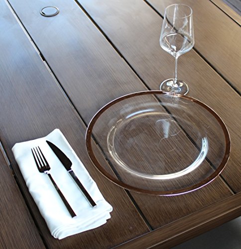 Studio : Ms Lovely Publisher : Ms Lovely Product Description These round elegant charger plates add sophistication to any table setting while the shiny metallic edge gives off a glamorous feel. Leave on the table regularly to add decor to a room or take them out and use under your regular dinner plate for a special occasion. These decorative service plates look stunning when used for a wedding or special event and can be used multiple times. The charger plates come in a pack of 4 and are not made to put in the dishwasher or microwave. 0