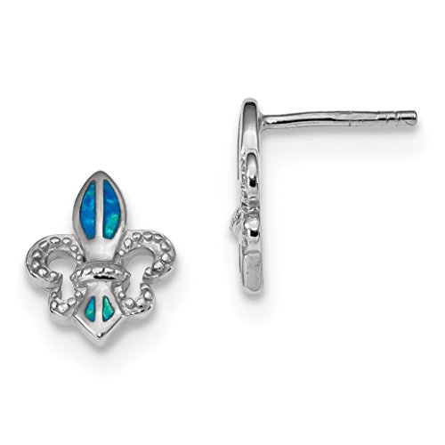 ICECARATS DESIGNER JEWELRY 925 STERLING SILVER BLUE CREATED OPAL FLEUR DE LIS POST STUD BALL BUTTON STUD EARRINGS