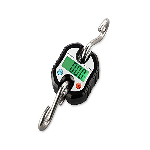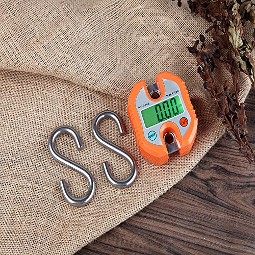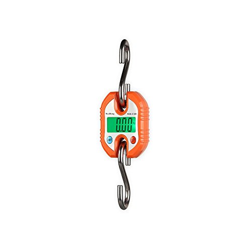 Product Description Features: High precision and large capacity 150kg digital scale Support 3 common weight scales, kg, lb jin Fast response stable performance Easy to carry operate LCD with green backlight The backlight will be extinguished after idle for 5 seconds and will be illuminated when pressing any button or weights of items have changed Auto or manual data lock unlock Automatic zero tracking With tare function Auto power off after idle for 120 seconds More durable with high strength ABS engineering plastic shell and stainless steel hook and loop Suitable for weighing items that are hard to place on a platform scale Ideal for industrial, agriculture, domestic, luggage, parcels, fishing and other heavy objects Specifications: LCD Display Color: black,orange(Send by default if you not make note) Material: ABS stainless steel Capacity: 150kg Double Division value: 0-100kg/50g,100- 150kg/100g Power supply: 2 x AAA battery (not included) Working voltage: 2.4V-3.33V Working current: backlight on <12mA; backlight off <5mA Shutdown current: <3μA Working temperature: 0C ~ 40C Humidity: ≤85%RH Package included: 1 x Digital Crane Scale 1 x Stainless steel hook 1 x Stainless steel loop 1x english manual 1x Standard factory package