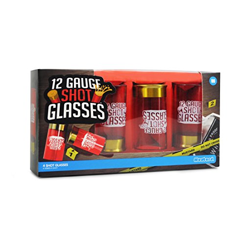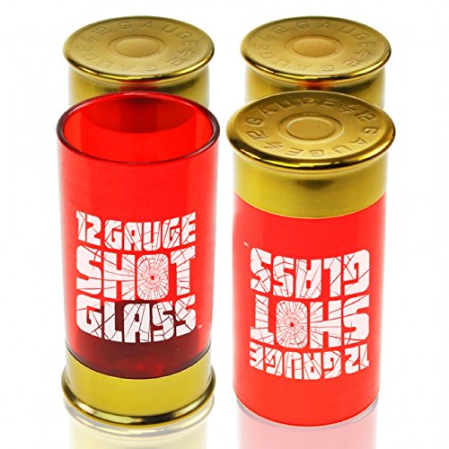 Studio : nov Publisher : nov Binding : Kitchen Product Description 12 Gauge Shot GlassesFire off a few rounds with our set of 12 Gauge Shot Glasses. Load each barrel with your favourite tipple, aim and fire! A great idea for Valentines gifts for him, and the perfect gift to accompany our Shots Gun, this set of 4 Shot Glasses look like empty bullet shells. The perfect accessory to any Wild West, Gangster or James Bond party, these glasses look fantastic and make great novelty gifts.Each glass is made of plastic with a metal base and the classic '12 GAUGE SHOTGLASS' stamp on the side. Whether your sin is Tequila Slammers or Vodka, shoot them back in style with these 12 Gauge Shot Glasses! Cause a stir at BBQ's, our Shot Glasses are certainly a talking point. Twinned with our Bullet Ice Cube Trays you can guarantee a perfectly themed event. Why not treat a friend to a bottle of their favourite liquor and some of our fantastic 12 Gauge Shot Glasses! You'll have a blast! 0