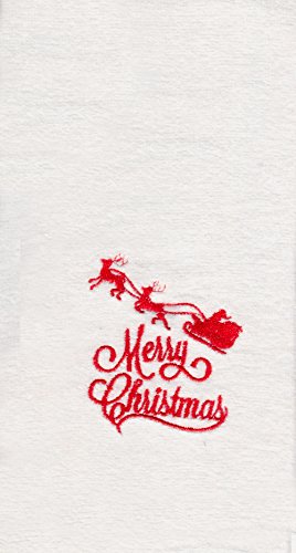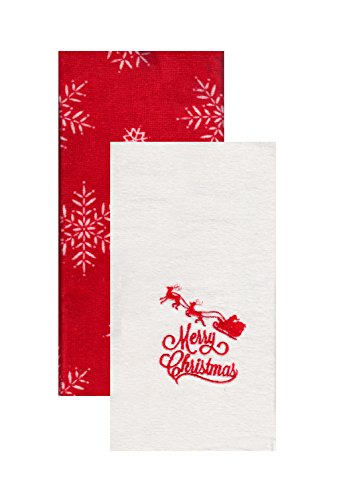 Christmas Kitchen Towels 2-Pack Santas Sleigh Merry Christmas and Snowflakes