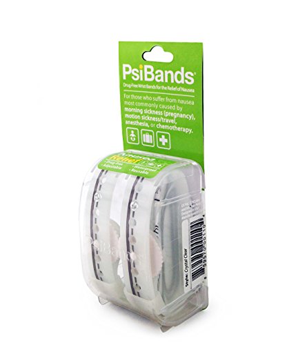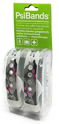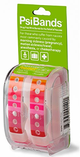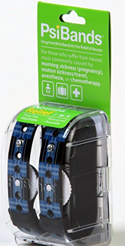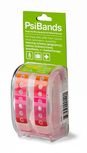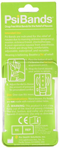 Studio : Psi Health Solutions Publisher : Psi Health Solutions Binding : Health and Beauty Product Description Natural, drug-free morning sickness relief! Psi Bands(R) rely on the ancient science of acupressure to ease nausea...and yes, they really do work. In multiple medical studies, wrist acupressure has been proven to prevent and treat nausea and vomiting. (They're even FDA-cleared). The adjustable wristband and unique pressure dial allow you to choose between 51 different settings, so it's easy to find the perfect fit and pressure for you. Made of waterproof, medical-grade rubber. Includes two wristbands, to be worn together. These relief bands ease nausea caused by morning sickness, motion sickness, anesthesia, and chemotherapy Psi Bands are waterproof, so you can wear them while showering, washing dishes, swimming, and more. Place one band on the inside of each wrist, 2 1/2 finger widths above the center of your wrist crease between the wrist tendons. This placement is known as the Nei-kuan acupressure point. The button should be facing in and the dial should be facing out. The fit should be snug but comfortable. A natural nausea remedy; no drugs, no drowsiness, no effect on baby To clean Psi Bands, use a damp cloth with mild soap and wipe gently; air dry Review: "My morning sickness was relieved by Psi Bands and they were very comfortable. Better yet, no one at work knew they were for nausea because the bands are so stylish!" - Sarah de la Torre, M.D., Seattle Obstetrics Gynecology Group 0