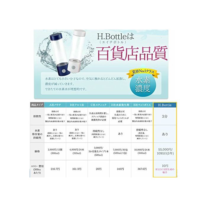 H.Bottle의 수소 파워에 매일의 수분 보급을 서포트!