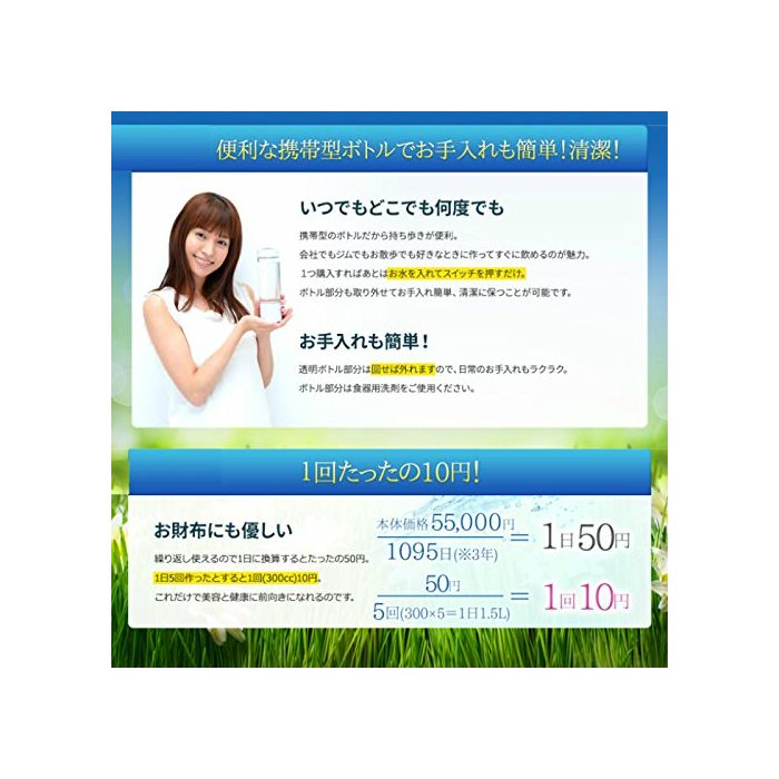 1일(날)5회 생성한 경우300cc당1회 불과 10엔입니다. (한 번의 충전으로 약40회 생성 가능)