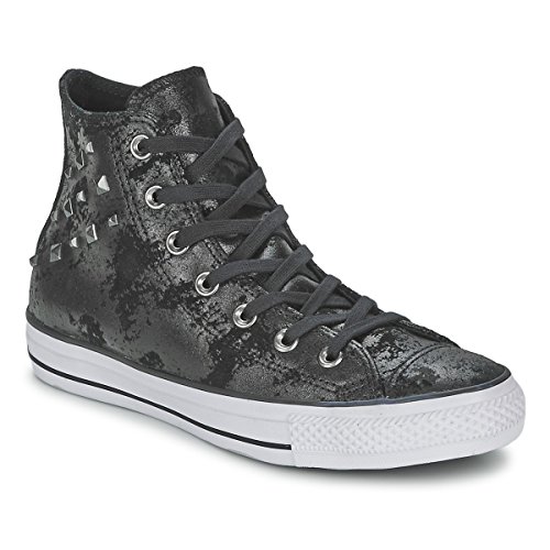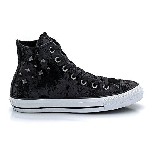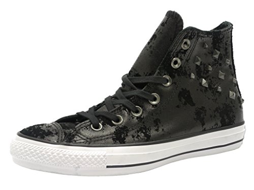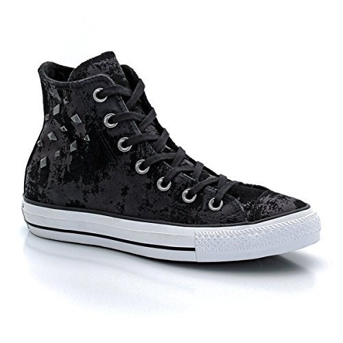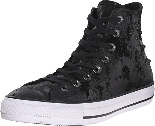 The Hardware Converse Chuck Taylor All Star hi top sneakers have suede appearance in black color and aredecorated with studs.