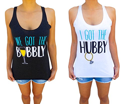 Bachelorette Party Shirts - Triblend Racerback Hubby and Bubbly Tanks (Medium, White)