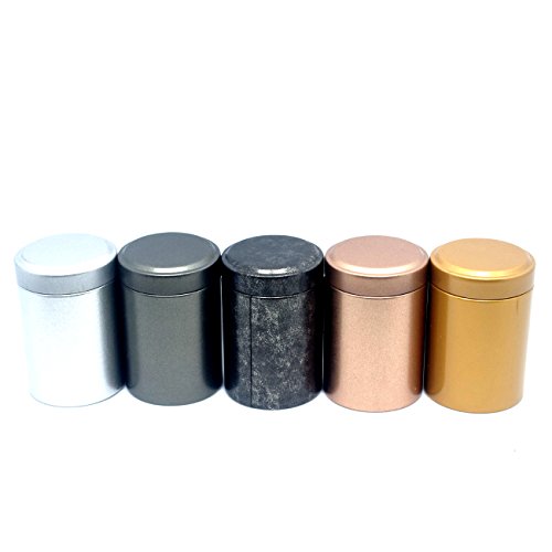 Terya Tea Tin Tea caddy Storage box - Set of 5 (Silvery & Gray & Golden & Black & Champagne)